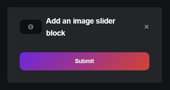 * Click the "Submit" button to add the image slider block to your chosen section.