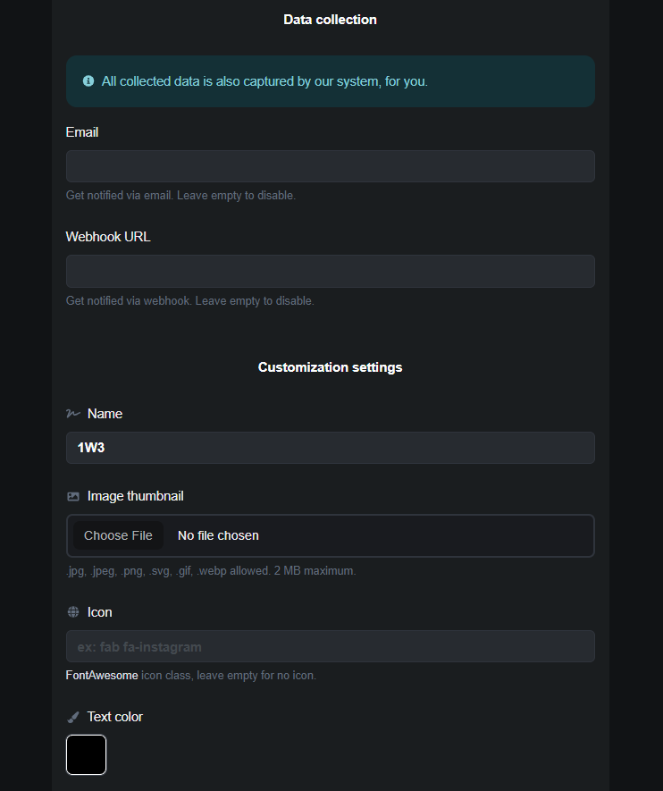 * Webhook URL to Get Notified: Optionally, provide a webhook URL to send the collected information to an external system.