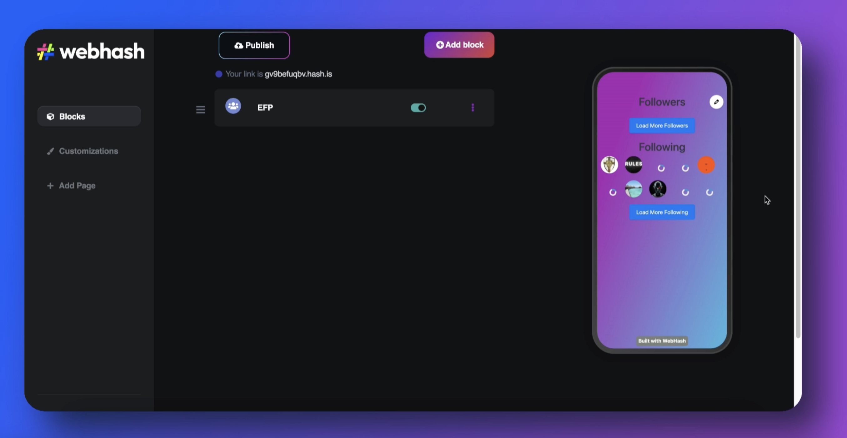 * Open your Webhash editor and navigate to the page where you want to add the EFP Block.