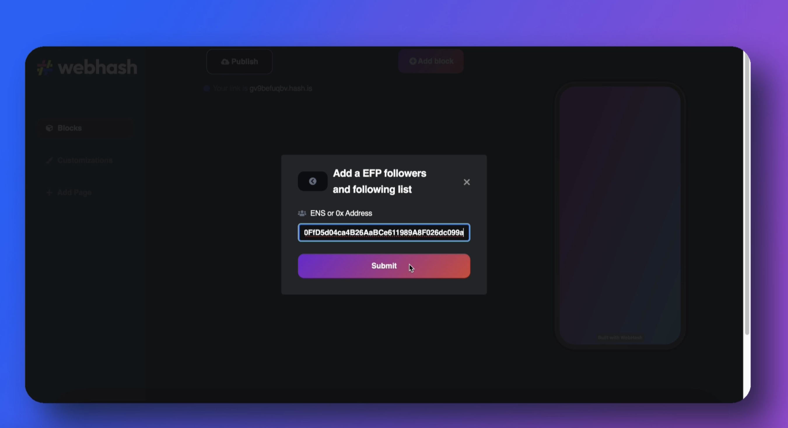 * Once you’ve entered the required details, click **Submit** to add the EFP Block to your website.