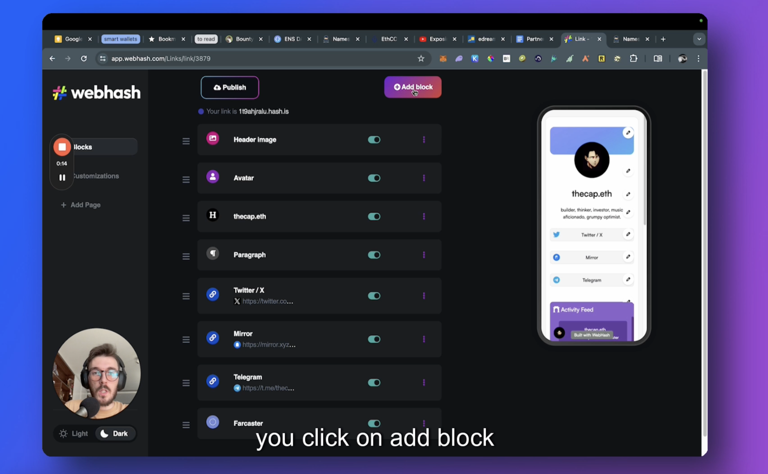 * Paste the **Widget ID** into the Namespace Widget Block pop-up on Webhash.